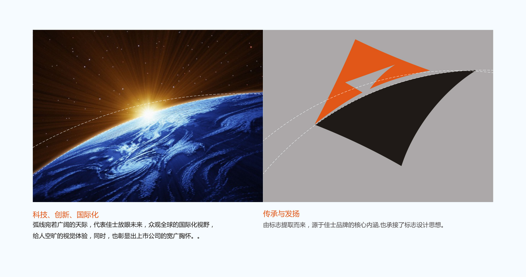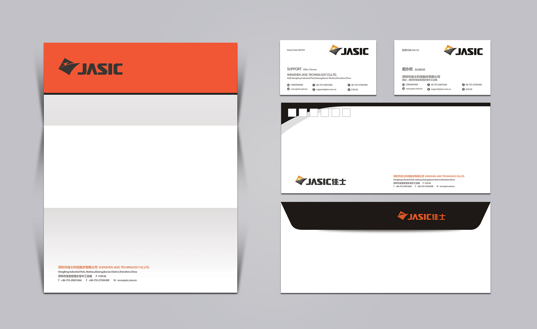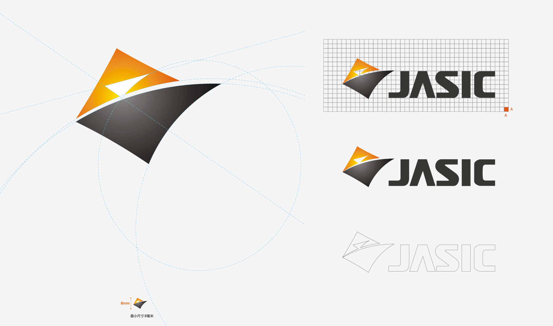 JASIC的標(biāo)志應(yīng)用了三個不同規(guī)則的三角形組合演變而成,正三角形給人穩(wěn)重、安定之感。在色彩上,運(yùn)用了歡快活潑的漸變暖色橘黃色、活力溫馨;而微變的倒三角形體現(xiàn)的是一種動感、創(chuàng)新、求變的理念,在色調(diào)上采用黑色、沉穩(wěn)大氣,也暗示著JASIC注重品質(zhì)感與科技感。