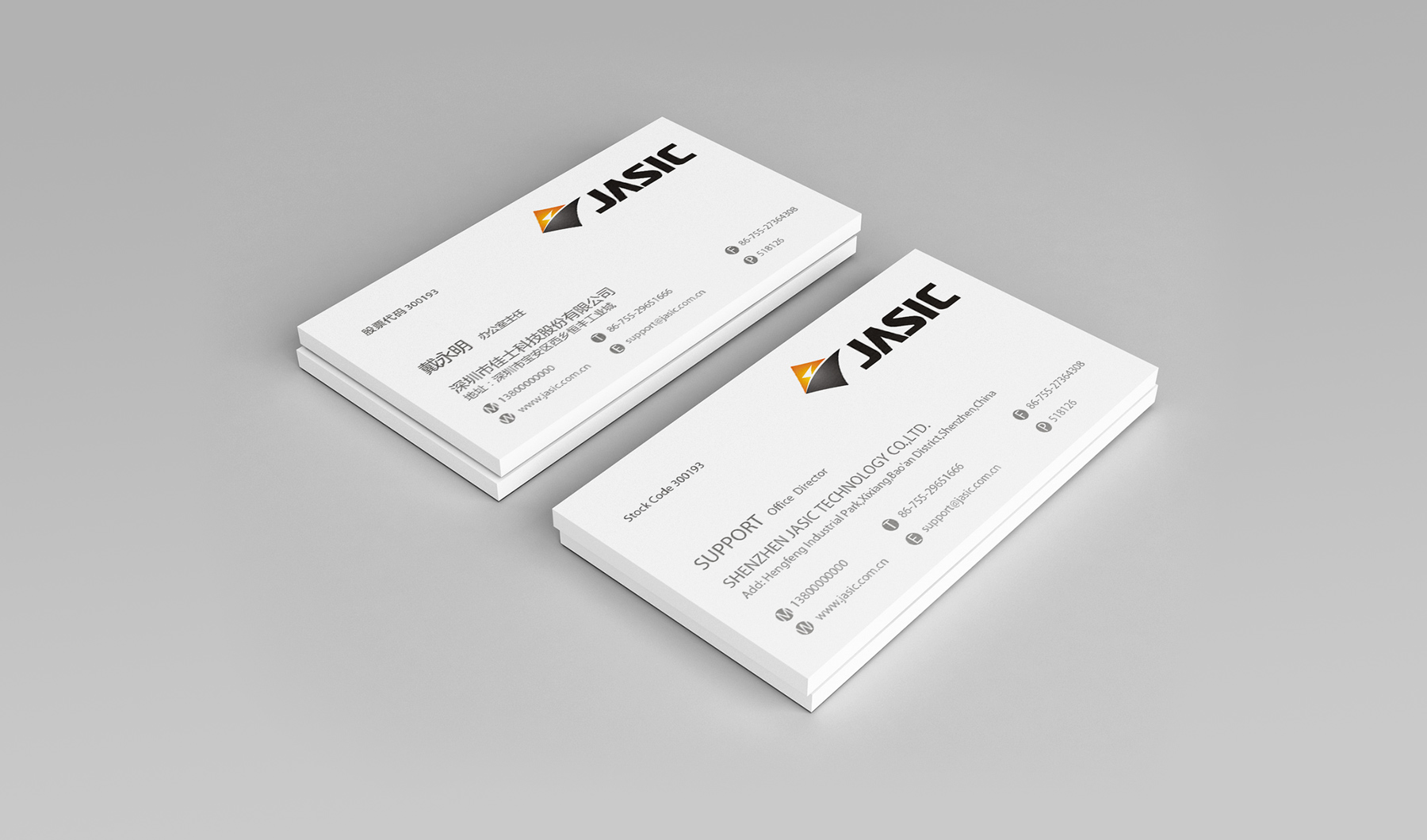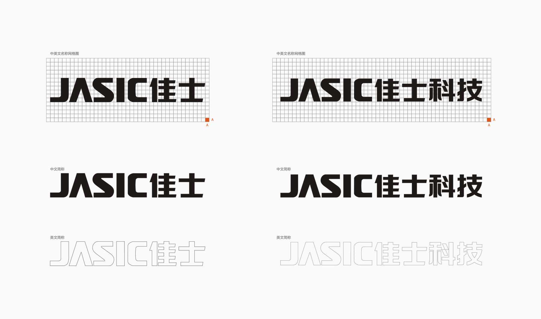 兩個組合中遵循形穩(wěn)色變、形變色穩(wěn)的平衡之道。正、倒三角形之間的上升漸寬的白色地帶形成了空間場性,更具視覺張力代表著JASIC積極向上不斷擴(kuò)張的企業(yè)愿景,整個標(biāo)志在形與色中做到了穩(wěn)重、簡潔、大氣。