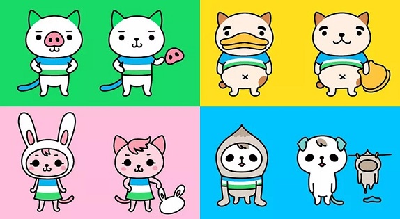 這次全家便利店的吉祥物,是四個(gè)乍一眼看上去像是四個(gè)不同物種,但其實(shí)都是喵星人,帶著豬鼻子嗅覺(jué)超常的BB老大,裝上了鴨嘴的大胃王Food小寶,戴著長(zhǎng)兔耳喜歡八卦的聆妹妹,穿著樹(shù)懶裝的超慢速I(mǎi)T狂人阿速。