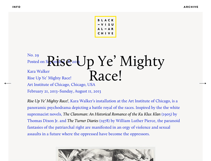 Black Visual Archive獲得了顧客讀者對(duì)其書刊內(nèi)容的越來越多的認(rèn)可,深圳品牌標(biāo)志設(shè)計(jì)公司獲悉客戶公司要求設(shè)計(jì)開發(fā)一套視覺標(biāo)志設(shè)計(jì)和品牌在線平面視覺系統(tǒng)網(wǎng)站,以更好地體現(xiàn)Black Visual Archive沿用風(fēng)格。深圳logo設(shè)計(jì)公司發(fā)現(xiàn)專心的開發(fā)了一個(gè)為內(nèi)容和讀者服務(wù)的網(wǎng)站,將其網(wǎng)站的結(jié)構(gòu)簡約化為基本的存檔形式,鼓勵(lì)遵循其發(fā)布線性特性的內(nèi)容導(dǎo)航,同時(shí)提供主次的時(shí)間順序索引。