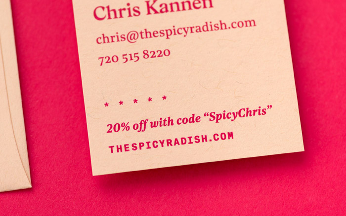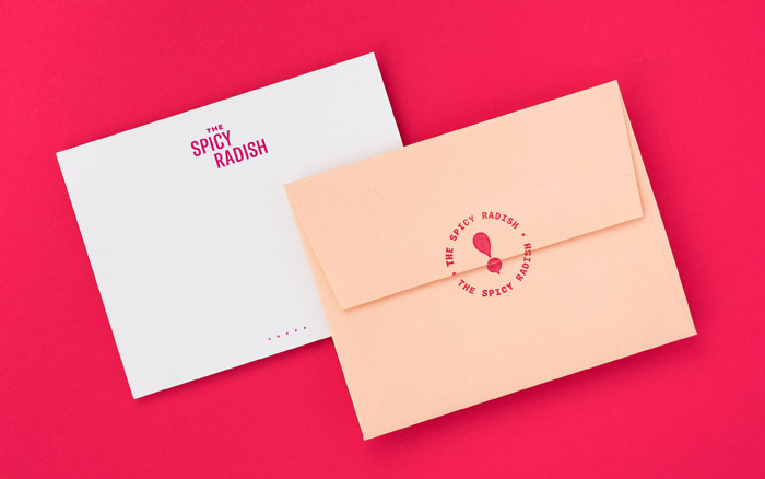 綠色環(huán)保可持續(xù)性的品牌設(shè)計(jì)應(yīng)用,僅僅因?yàn)榧垙垖?duì)環(huán)境友好,并不意味著它必須“看起來”對(duì)環(huán)境友好。對(duì)于Spicy Radish抵押品,我們使用了French Paper的Kraft-Tone紙生產(chǎn)線,這是一種100%的消費(fèi)后再生環(huán)保紙,提供多種顏色。紙張材質(zhì)為品牌增添了美麗的溫暖和質(zhì)感。