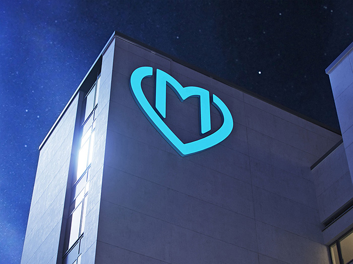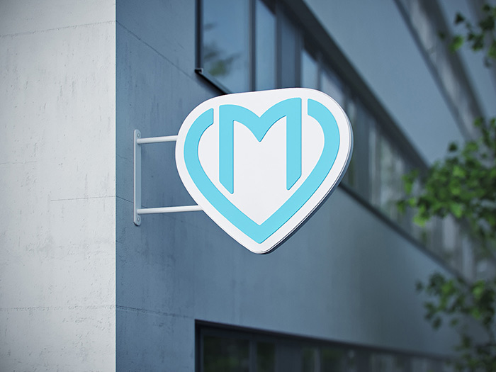 當您接近建筑物時,大心臟從視野中消失了:要再次看到它,您需要傾斜頭部。這就是為什么通過支架面板上的徽標來標記多診所的入口。西安vi設(shè)計公司感覺這些面板安裝在較低的高度,可以從人行道上輕松看到。