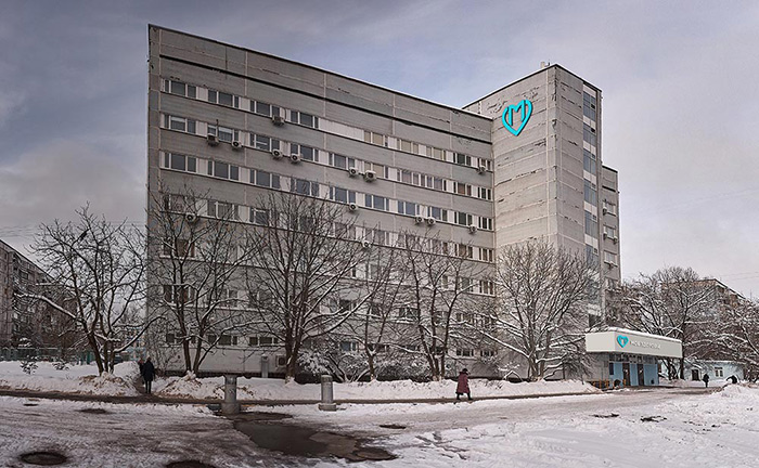 外墻裝飾著一個巨大的字母M,被聽診器包圍。Veniamin Polikarpovich從遠處注意到了心形符號。它很漂亮(可識別的徽標放置在城市綜合診所的所有高層建筑上)。白天,象征與藍藍的天空押韻。到了晚上,它在黑暗的天空中發(fā)出外星光芒。