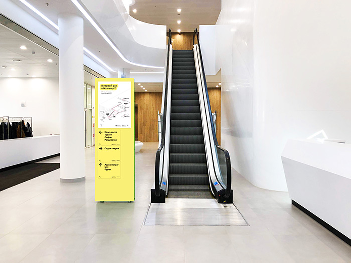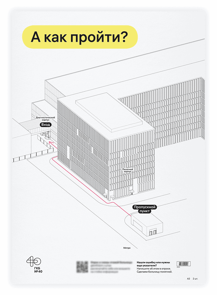 2020年3月,位于Kommunarka的新醫(yī)院在全國聞名:這是第一家開始接受冠狀病毒患者的醫(yī)院。原來作為多功能保健中心而建的醫(yī)院已被完全改建。這就需要緊急創(chuàng)建新的地圖和標(biāo)志,以幫助工作人員和志愿者在不浪費寶貴時間的情況下走走,并為抗擊大流行的人們設(shè)計重要的指導(dǎo)說明如何保護自己。