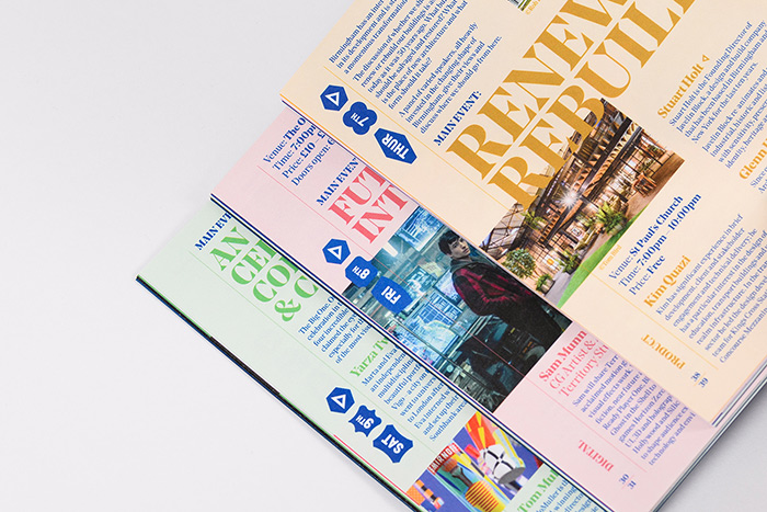 持續(xù)的調(diào)色板是藍(lán)色和灰色,靈感來自伯明翰的徽章,并伴隨著年度主題定義的顏色。今年,選擇了互補(bǔ)的紅色,綠色和黃色色調(diào)、所有的色彩都是充滿活力和漸進(jìn)的色彩。