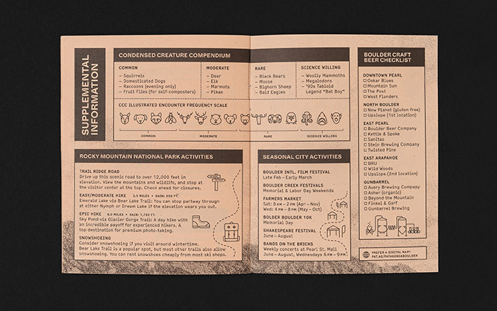 廣州logo設(shè)計(jì)公司報(bào)道:當(dāng)巴塔哥尼亞的生態(tài)先驅(qū)者與品牌logo設(shè)計(jì)公司聯(lián)系,為Boulder包裝設(shè)計(jì)及畫冊(cè)設(shè)計(jì)印刷指南時(shí),我們知道我們有機(jī)會(huì)推動(dòng)環(huán)??沙掷m(xù)發(fā)展。廣州標(biāo)志設(shè)計(jì)公司發(fā)現(xiàn)最終結(jié)果是一個(gè)有趣而又方便的袖珍指南畫冊(cè),這也是世界上首次使用藻類膠印油墨材料。設(shè)計(jì)受Patagonia的委托,設(shè)計(jì)了前往科羅拉多州博爾德市的指南,我們打破了典型的地圖慣例,并開發(fā)了一種獨(dú)特的格式。袖珍本小冊(cè)子提供了最大的功能,并為食肉癖者提供了更好的體驗(yàn),它利用不同的縮放級(jí)別來滿足從“過馬路”到“一小時(shí)車程”的各個(gè)興趣點(diǎn)。