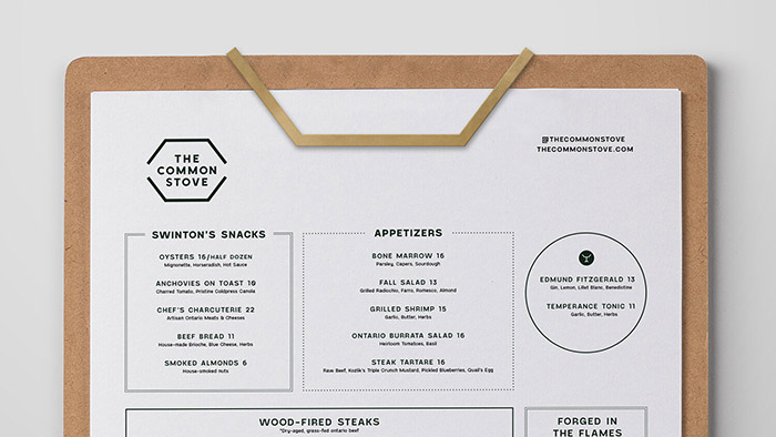 品牌logo設(shè)計的每個要素都必須提及當(dāng)?shù)氐淖匀画h(huán)境,尤其是通過使用木材來為火提供動力。但這還必須融合食品聚會人們的想法,并闡明品牌背后的強(qiáng)烈社區(qū)意識。菜單VI設(shè)計受到燃木燒烤和元素烹飪的影響,并使用來自廣simplicity森林和湖泊的本地天然食材,注重質(zhì)量和簡約性。在火焰中鍛造,我們對本地競爭對手的研究確定了一個機(jī)會,可以通過智能,熱情和引人入勝的消息在人群中脫穎而出。我們使用用于展位和廚房柜臺的U形來創(chuàng)建靈活的支撐形狀,以反映kachelofen爐子的傳統(tǒng)概念。深圳logo設(shè)計公司認(rèn)為它啟發(fā)了印刷的細(xì)節(jié),以及門把手和菜單架等物理元素。我們還創(chuàng)建了標(biāo)志設(shè)計符號來捕捉該地區(qū)的曠野感覺,美食聚集和當(dāng)?shù)伧攘?。調(diào)色板受當(dāng)?shù)丨h(huán)境的影響,這些環(huán)境模仿了森林,水晶般清澈的湖泊和簡單的優(yōu)質(zhì)成分的自然色調(diào)。所使用的字體設(shè)計受到東歐和俄羅斯的啟發(fā)-巧妙地引用了The Common Stove的起源。標(biāo)題被定制以反映多倫多地鐵的幾何無襯線細(xì)節(jié)。在品牌菜單設(shè)計中,幾何形狀的使用得到了進(jìn)一步的發(fā)展,讓人聯(lián)想起地鐵磚。