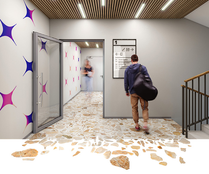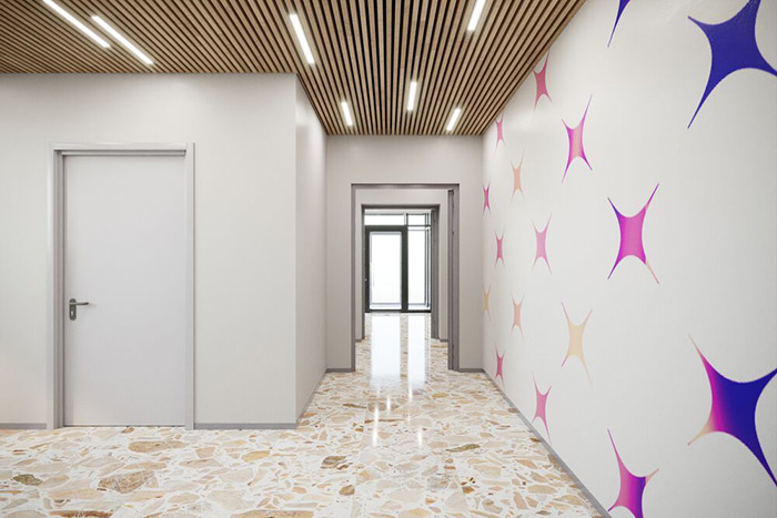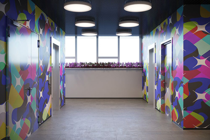 杭州vi設(shè)計(jì)公司了解到前蘇聯(lián)時(shí)期流行的水磨石地板,經(jīng)過(guò)拋光修復(fù),保留了懷舊的藝術(shù)感覺(jué)。房間長(zhǎng)長(zhǎng)的空白墻壁以及過(guò)道的表面都裝飾有精美的圖案。