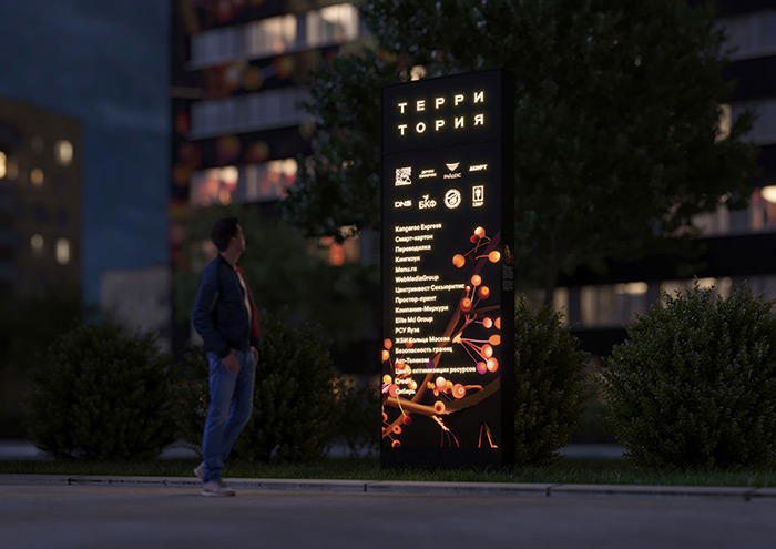每座Territoriya建筑物前都有一座五顏六色的塔。它包含有關(guān)租戶的信息,并解釋了用涂鴉裝飾建筑物墻壁的想法。