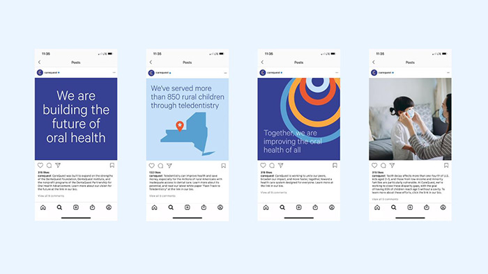 該品牌生態(tài)明確了研究所改善所有人口腔健康的目標(biāo)。其新名稱CareQuest口腔健康研究所服務(wù)于三個(gè)目的:直觀且與使命和目的明確相關(guān),以組織提供的利益為基礎(chǔ),并表明對(duì)進(jìn)步和影響的承諾。
