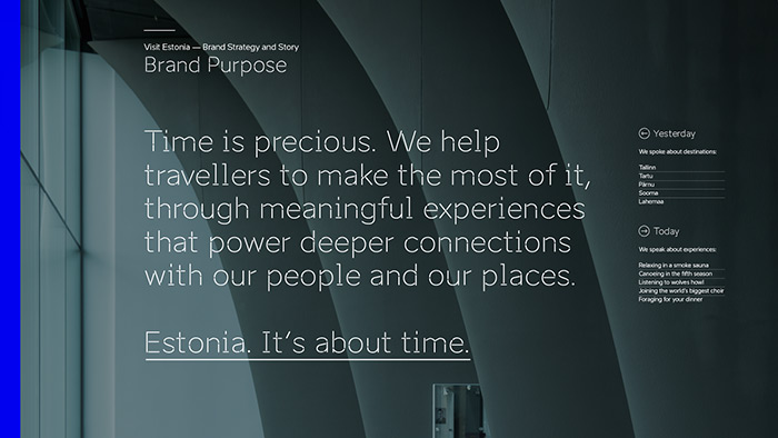 宣言:捕捉每一種激情和所提供體驗(yàn)的情感力量,直接與觀眾對(duì)話。強(qiáng)調(diào)愛(ài)沙尼亞的獨(dú)特之處。