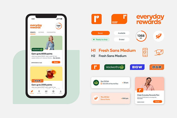 重慶vi設(shè)計(jì)公司QC本期報(bào)道:EverydayRewards是擁有超過(guò)1200萬(wàn)用戶(hù)粉絲的B2C零售科技互聯(lián)網(wǎng)公司,是澳大利亞最大的電商購(gòu)物平臺(tái)和購(gòu)物節(jié)擴(kuò)展粉絲用戶(hù)群及提高對(duì)品牌忠誠(chéng)度的計(jì)劃之一,每次在Woolworths集團(tuán)購(gòu)物時(shí)都會(huì)獎(jiǎng)勵(lì)購(gòu)物的用戶(hù)。重慶vi設(shè)計(jì)公司認(rèn)為品牌通過(guò)視覺(jué)形象系統(tǒng)傳達(dá)成長(zhǎng)感的理念,來(lái)表達(dá)EverydayRewards為客戶(hù)人群提供更有價(jià)值的服務(wù),從品牌logo設(shè)計(jì)中的葉子圖案開(kāi)始,葉子的圖形從左下到右上的生長(zhǎng)形態(tài),與品牌構(gòu)成的自然向上、樂(lè)觀的精神內(nèi)涵相聯(lián)系。不斷的執(zhí)行獲得一次次小的勝利,重慶vi設(shè)計(jì)公司認(rèn)為在品牌設(shè)計(jì)呈現(xiàn)上我們盡可能用簡(jiǎn)單色彩和引人入勝設(shè)計(jì)方案來(lái)向消費(fèi)者傳達(dá)品牌獎(jiǎng)勵(lì)計(jì)劃的利益。EverydayRewards為人們的生活帶來(lái)了小小獎(jiǎng)勵(lì)和購(gòu)物時(shí)的驚喜,從插圖到攝影和品牌口號(hào)的方方面面中體現(xiàn)出來(lái)。重慶vi設(shè)計(jì)公司覺(jué)讓每一天都是新鮮的,在品牌設(shè)計(jì)上vi設(shè)計(jì)公司采用通俗易懂的桔子視覺(jué)形象符號(hào),以足夠簡(jiǎn)約有力的設(shè)計(jì)和由多個(gè)團(tuán)隊(duì)嚴(yán)密配合執(zhí)行,讓整個(gè)活動(dòng)充滿(mǎn)了靈活又溫馨親切,這樣可以讓品牌大量的用戶(hù)在每周通訊中不斷的獲得參與感和積分獎(jiǎng)勵(lì)的歡樂(lè)。