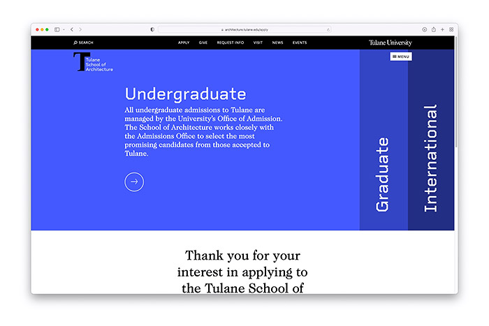 品牌vi設計公司的職責是為杜蘭建筑學院研發(fā)設計一個獨特的品牌視覺識別,使該學院與杜蘭的其他學院區(qū)別開來,同時也將自己與全國其他著名的建筑項目區(qū)分開來。深圳vi設計公司認為與此同時人們希望這個品牌視覺識別能夠在視覺上承認母校,并感覺自己是杜蘭大學家族系統(tǒng)成員中的一員。此外,品牌設計公司團隊還被要求重新設計和徹底改造杜蘭建筑學院官方線上網(wǎng)站,并設計一套能為印刷品牌宣傳的物料,重塑的新外觀和注入品牌感覺。有了這些參數(shù),品牌設計團隊探索了多種方法,最終找到了一個藍色字母“T”的形式作為新的載體標志。新標志設計的一半借鑒了杜蘭大學主要標志?;盏牧_馬帽“T”,一半?yún)⒖剂水敶ㄖ囆g和工藝。這一半還讓人想起老式的T形方格,這是AutoCAD設計軟件出現(xiàn)之前的建筑繪圖的基礎繪圖工具。