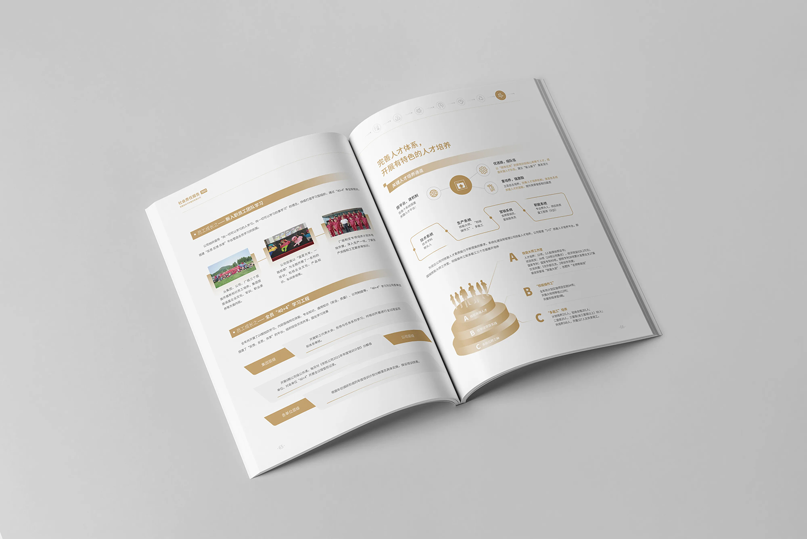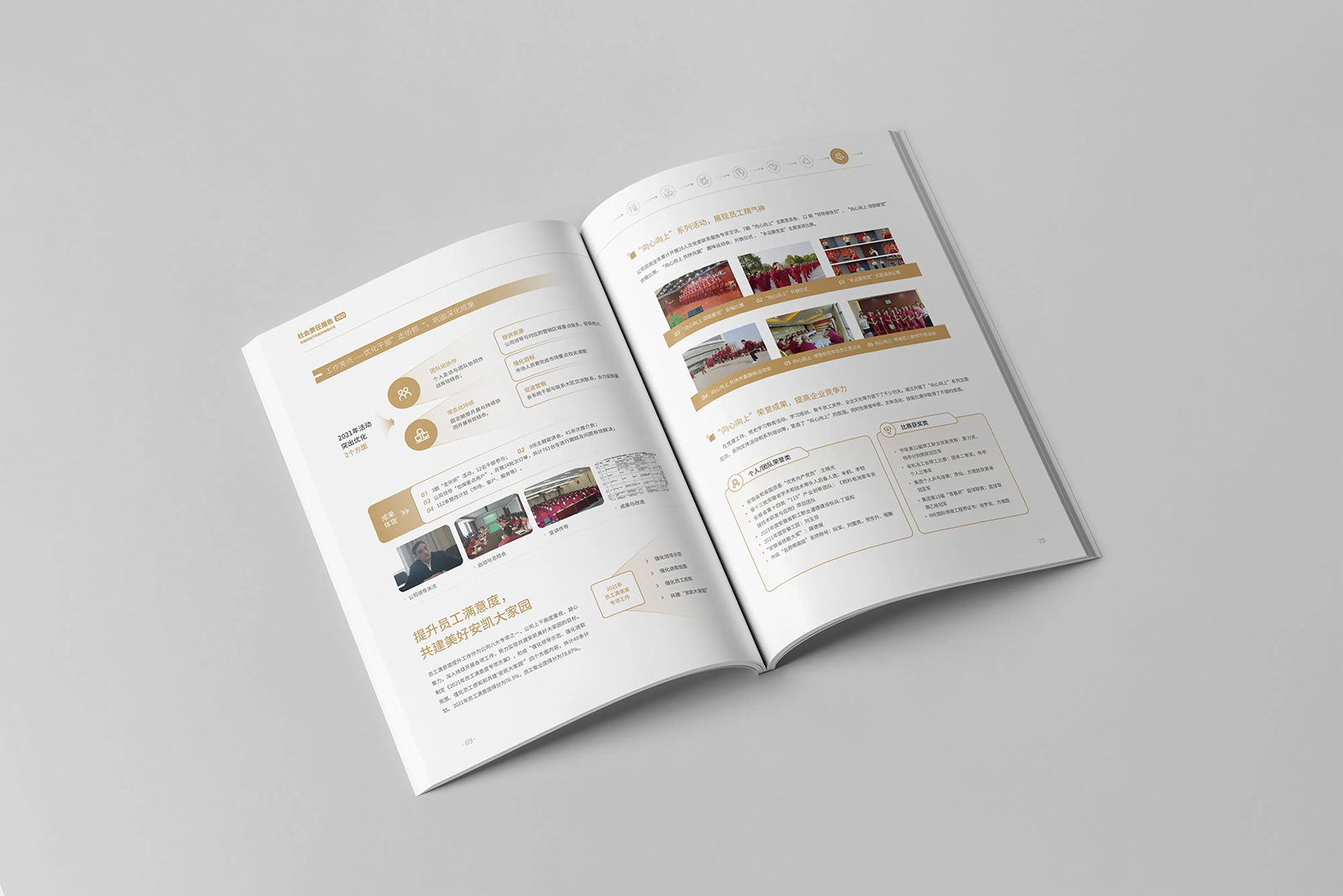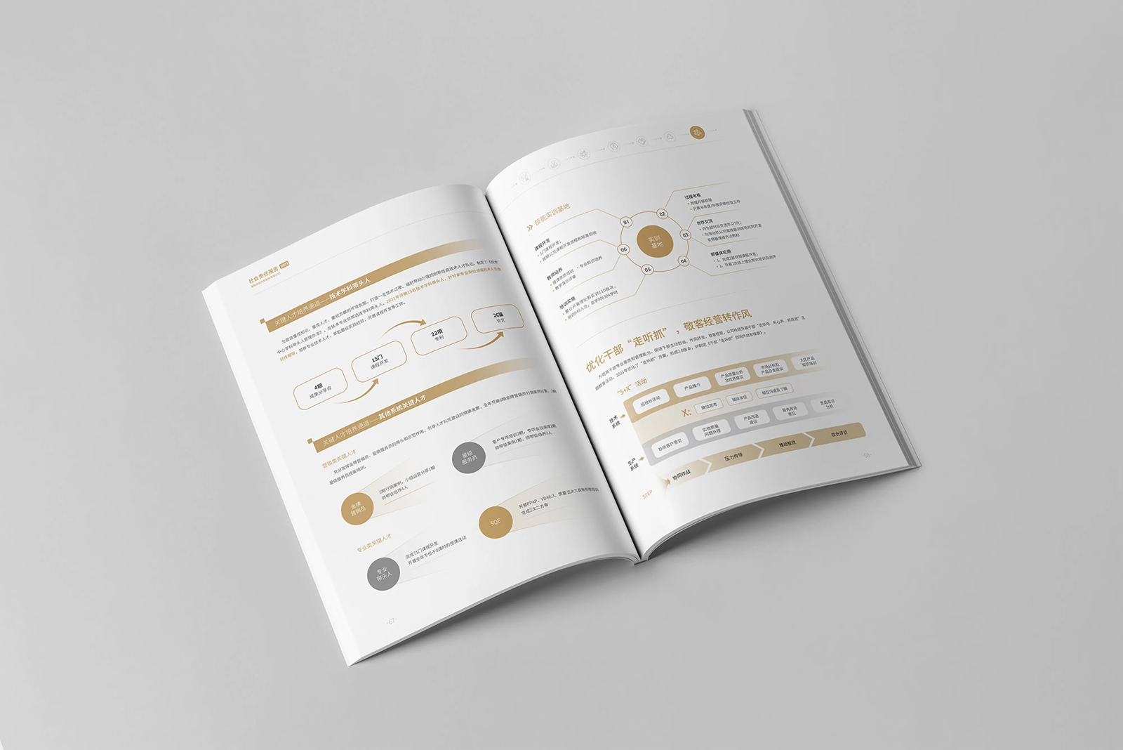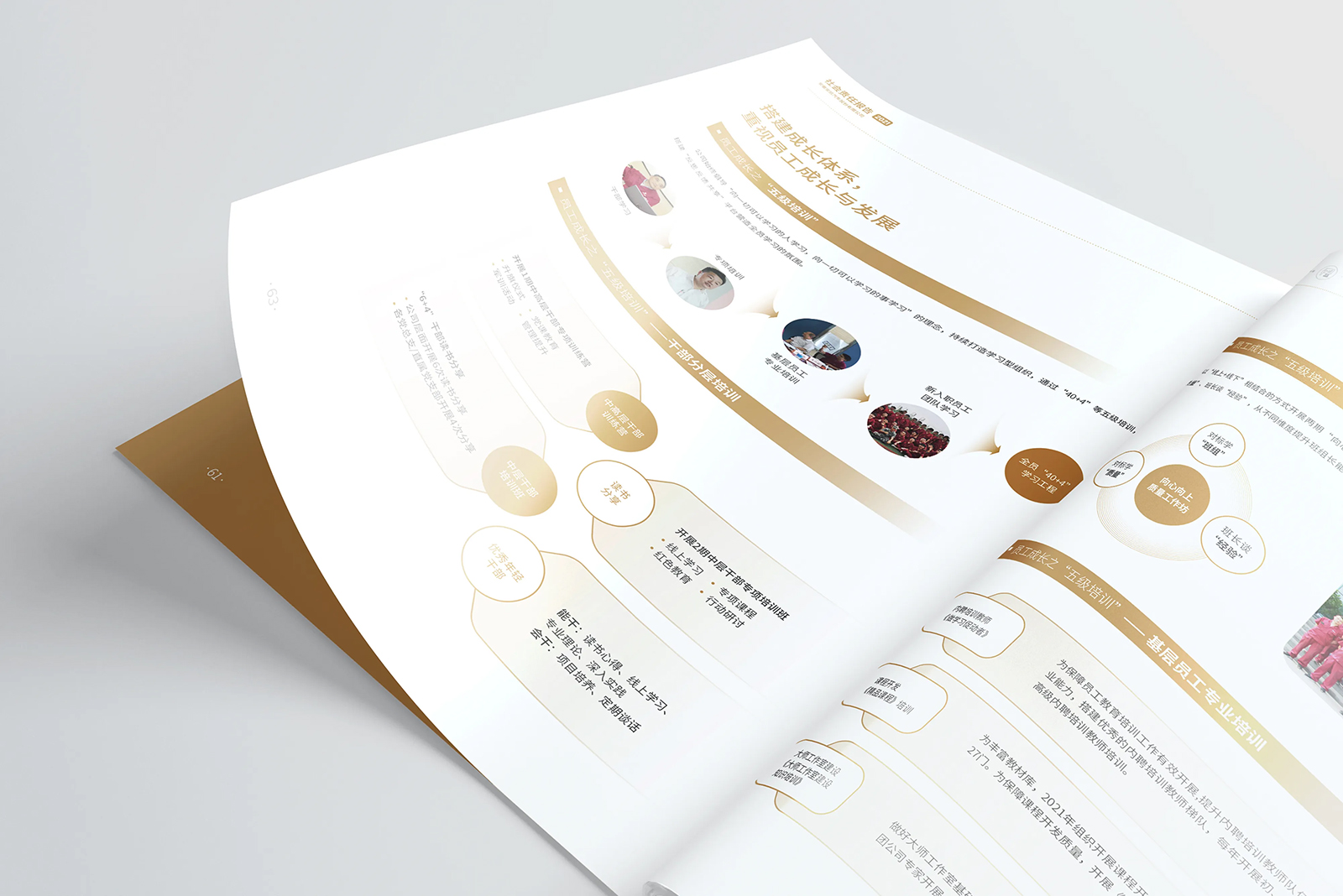 整體畫冊的設計反映出企業(yè)的專業(yè)性、創(chuàng)新性和可靠性。通過精心設計的版式、色彩、字體和圖像,我們創(chuàng)造出一個既美觀又實用的宣傳工具,幫助企業(yè)在市場中建立強大的品牌形象。封面是畫冊的第一印象,它需要簡潔而有力地傳達企業(yè)的核心價值。我們采用干凈、現(xiàn)代的設計風格。使用企業(yè)的標準色彩以傳達企業(yè)的專業(yè)性和可靠性。封面上放置企業(yè)名稱,以及一個簡潔有力的口號。內(nèi)頁延續(xù)封面的設計風格,保持一致性以便于讀者快速抓住信息要點。文字內(nèi)容簡潔明了,避免冗長。圖片選擇高質(zhì)量的攝影作品,展示企業(yè)的工作環(huán)境、產(chǎn)品或服務。色彩是傳達情感和信息的重要元素,我們采用了專業(yè)高端的金色來傳達企業(yè)的穩(wěn)重和創(chuàng)新。色彩的使用在整個畫冊中保持一致,以增強品牌識別度。圖像和圖表是傳達復雜信息的有效方式,在畫冊中使用圖表來展示企業(yè)的成就、增長趨勢或產(chǎn)品特點。圖像與文本內(nèi)容相關,并且質(zhì)量高,以增強信息的可信度。版式布局清晰有序,以便于讀者閱讀。圖片和空白區(qū)域,確保整個畫冊的平衡和諧。每個頁面的布局都有焦點,避免元素過多導致視覺混亂。為了確保畫冊的高質(zhì)量,我們選擇高質(zhì)量的紙張和印刷工藝。這不僅能夠提升畫冊的質(zhì)感,也能夠更好地展示企業(yè)的專業(yè)形象。
