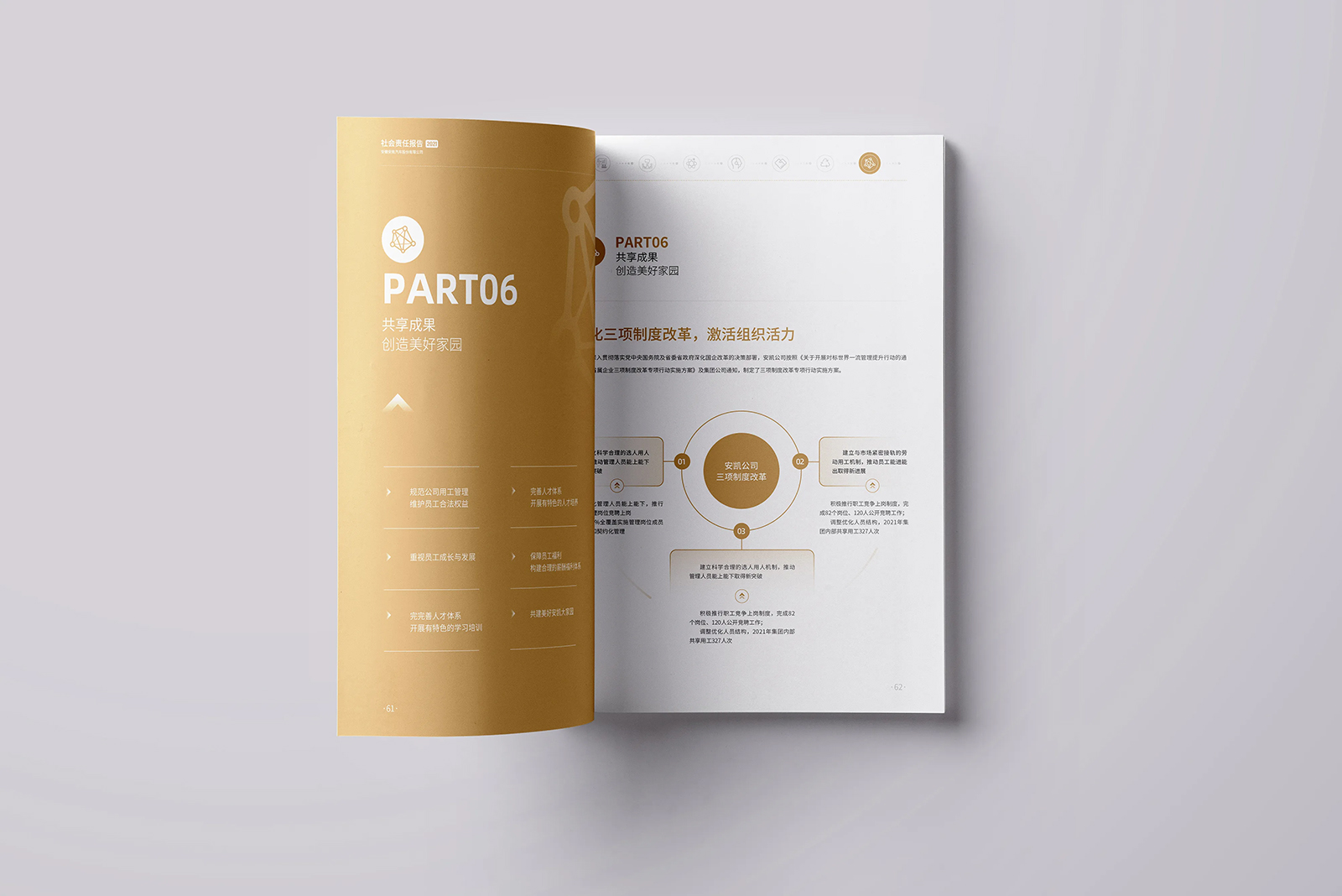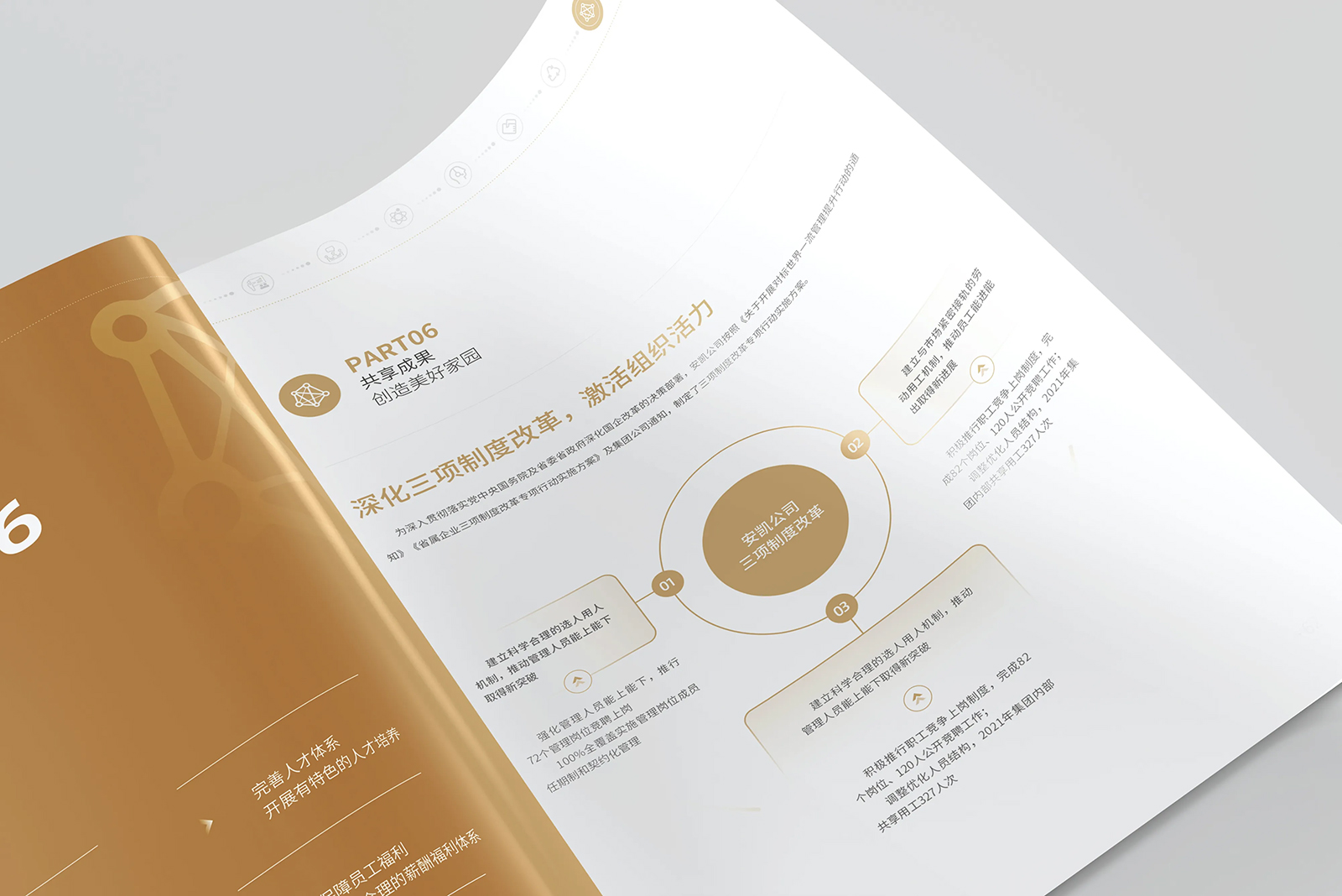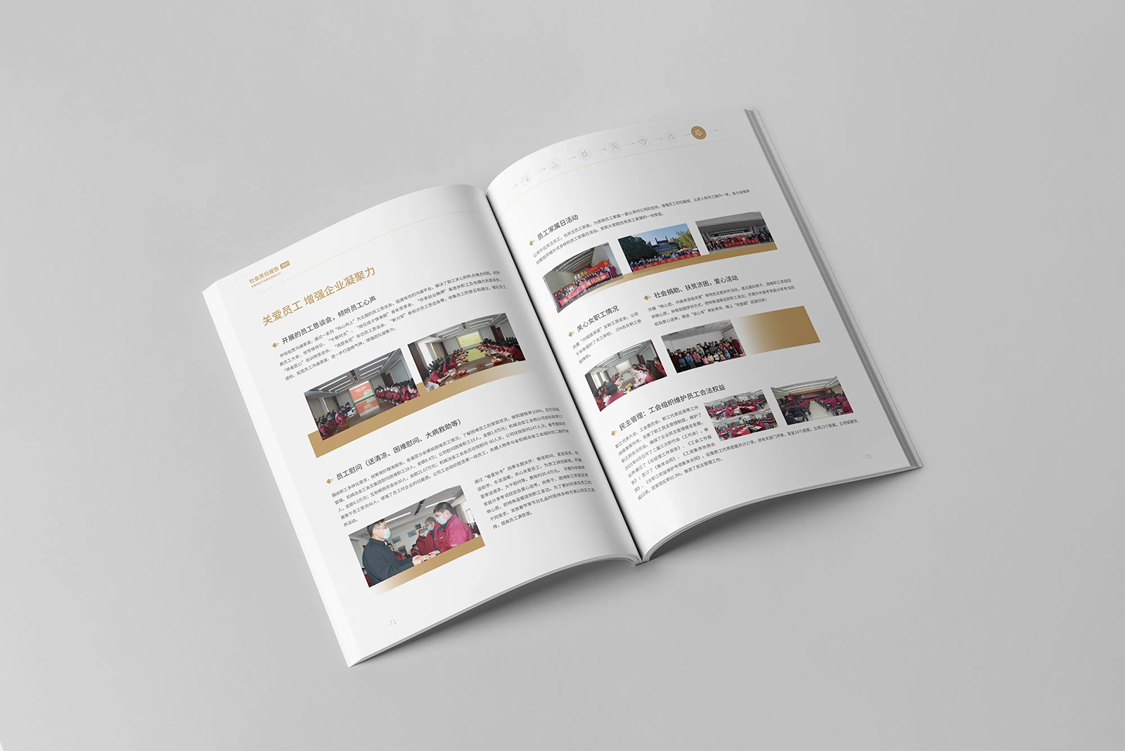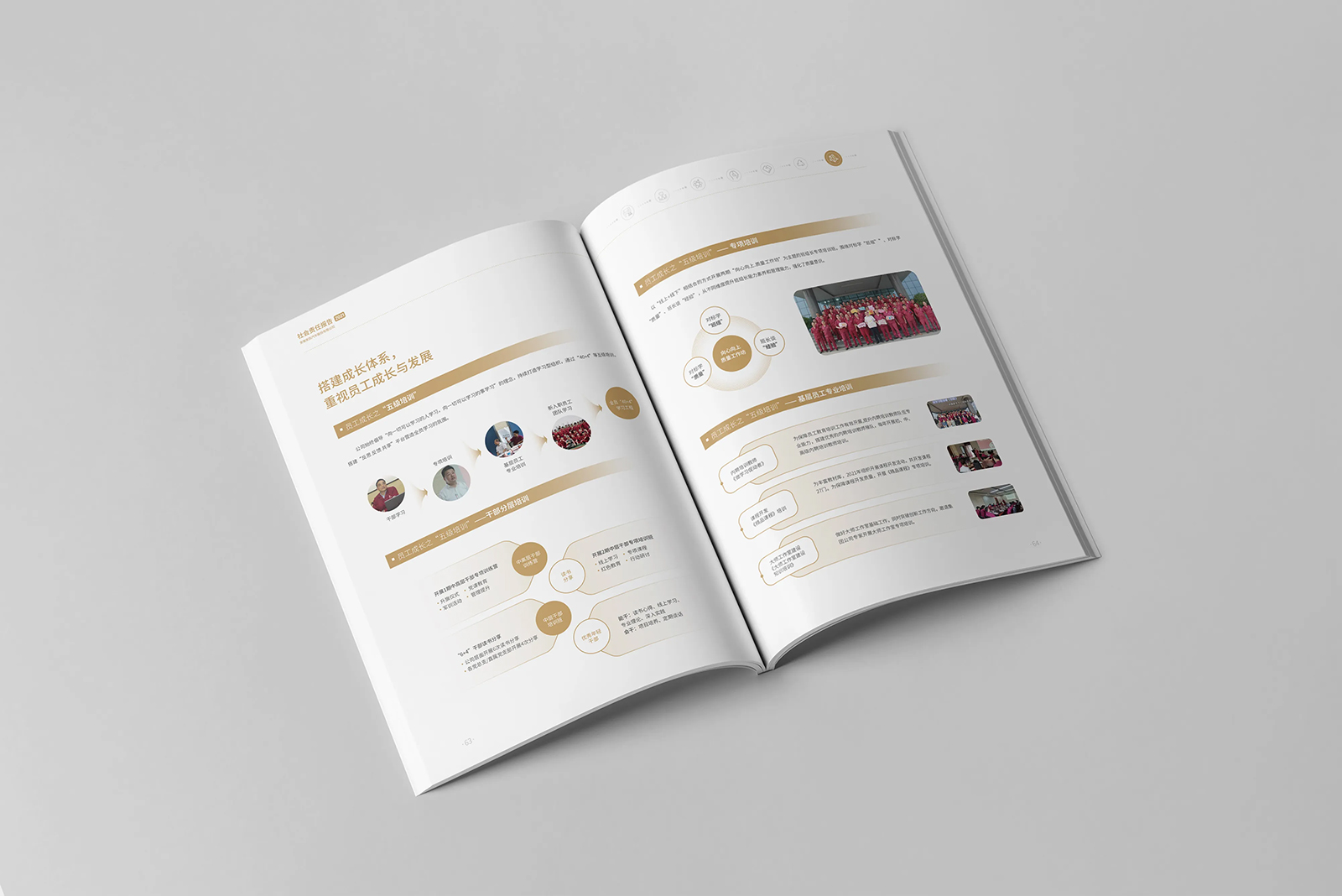 整體畫冊的設計反映出企業(yè)的專業(yè)性、創(chuàng)新性和可靠性。通過精心設計的版式、色彩、字體和圖像,我們創(chuàng)造出一個既美觀又實用的宣傳工具,幫助企業(yè)在市場中建立強大的品牌形象。封面是畫冊的第一印象,它需要簡潔而有力地傳達企業(yè)的核心價值。我們采用干凈、現(xiàn)代的設計風格。使用企業(yè)的標準色彩以傳達企業(yè)的專業(yè)性和可靠性。封面上放置企業(yè)名稱,以及一個簡潔有力的口號。內(nèi)頁延續(xù)封面的設計風格,保持一致性以便于讀者快速抓住信息要點。文字內(nèi)容簡潔明了,避免冗長。圖片選擇高質(zhì)量的攝影作品,展示企業(yè)的工作環(huán)境、產(chǎn)品或服務。色彩是傳達情感和信息的重要元素,我們采用了專業(yè)高端的金色來傳達企業(yè)的穩(wěn)重和創(chuàng)新。色彩的使用在整個畫冊中保持一致,以增強品牌識別度。圖像和圖表是傳達復雜信息的有效方式,在畫冊中使用圖表來展示企業(yè)的成就、增長趨勢或產(chǎn)品特點。圖像與文本內(nèi)容相關,并且質(zhì)量高,以增強信息的可信度。版式布局清晰有序,以便于讀者閱讀。圖片和空白區(qū)域,確保整個畫冊的平衡和諧。每個頁面的布局都有焦點,避免元素過多導致視覺混亂。為了確保畫冊的高質(zhì)量,我們選擇高質(zhì)量的紙張和印刷工藝。這不僅能夠提升畫冊的質(zhì)感,也能夠更好地展示企業(yè)的專業(yè)形象。