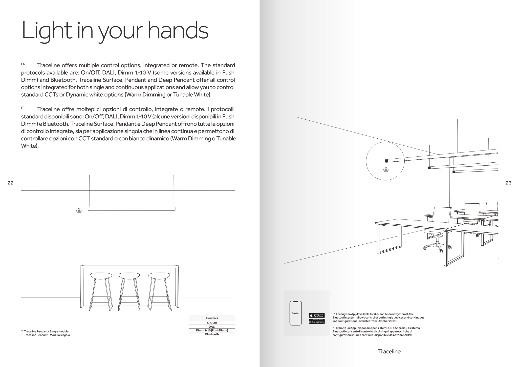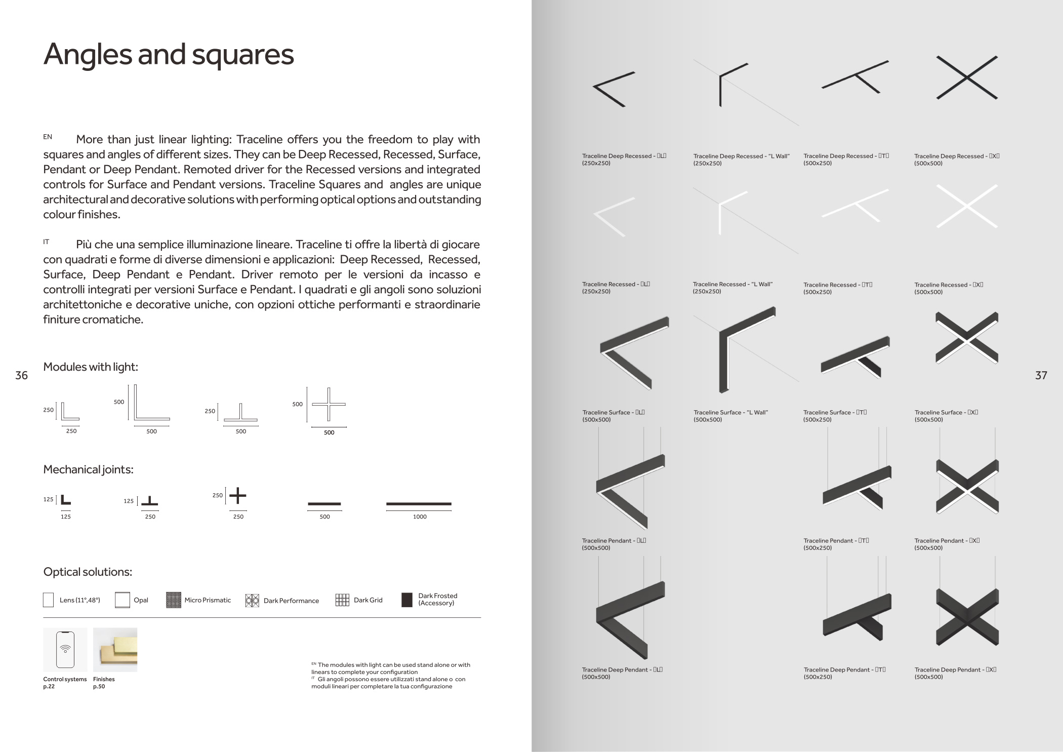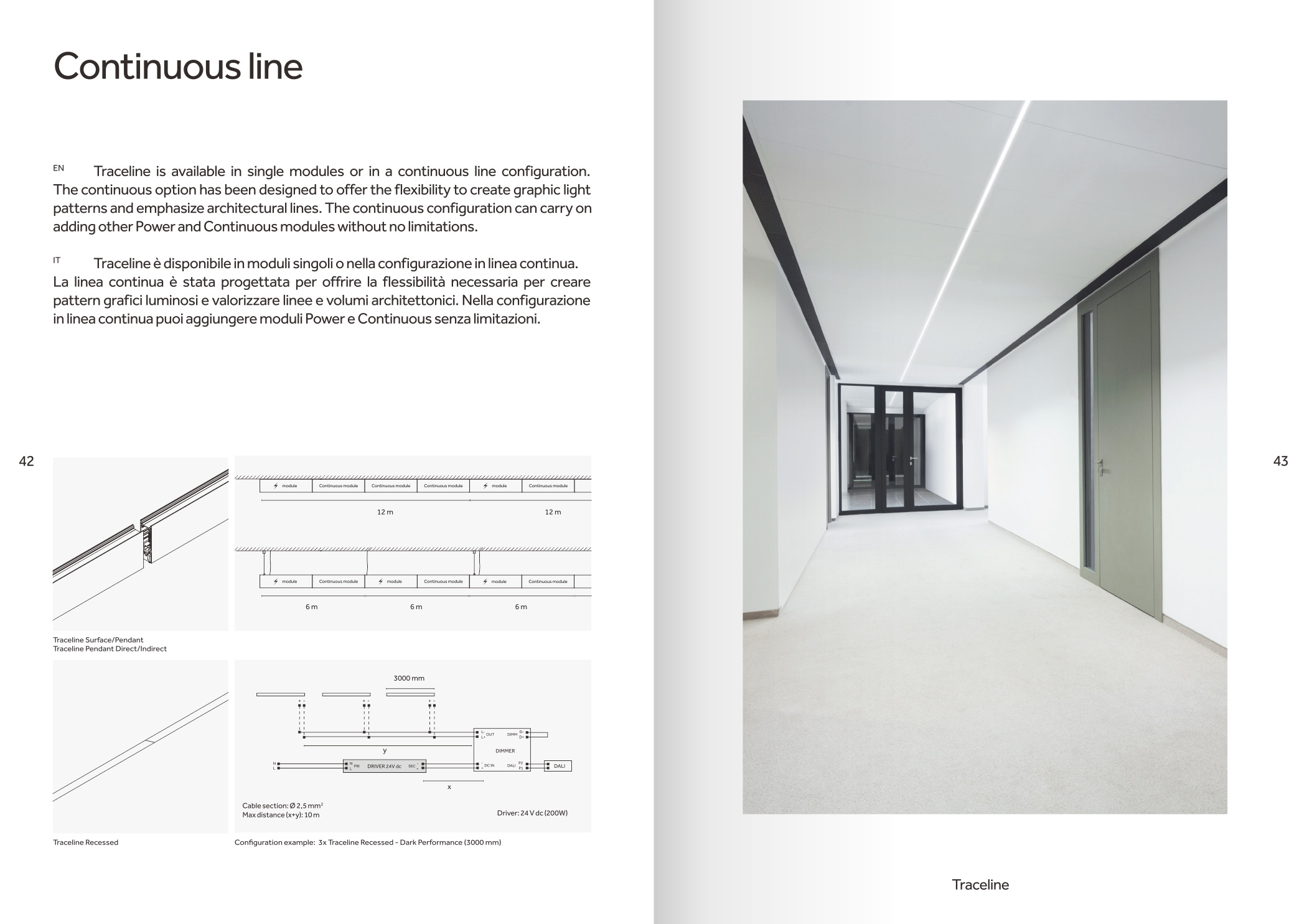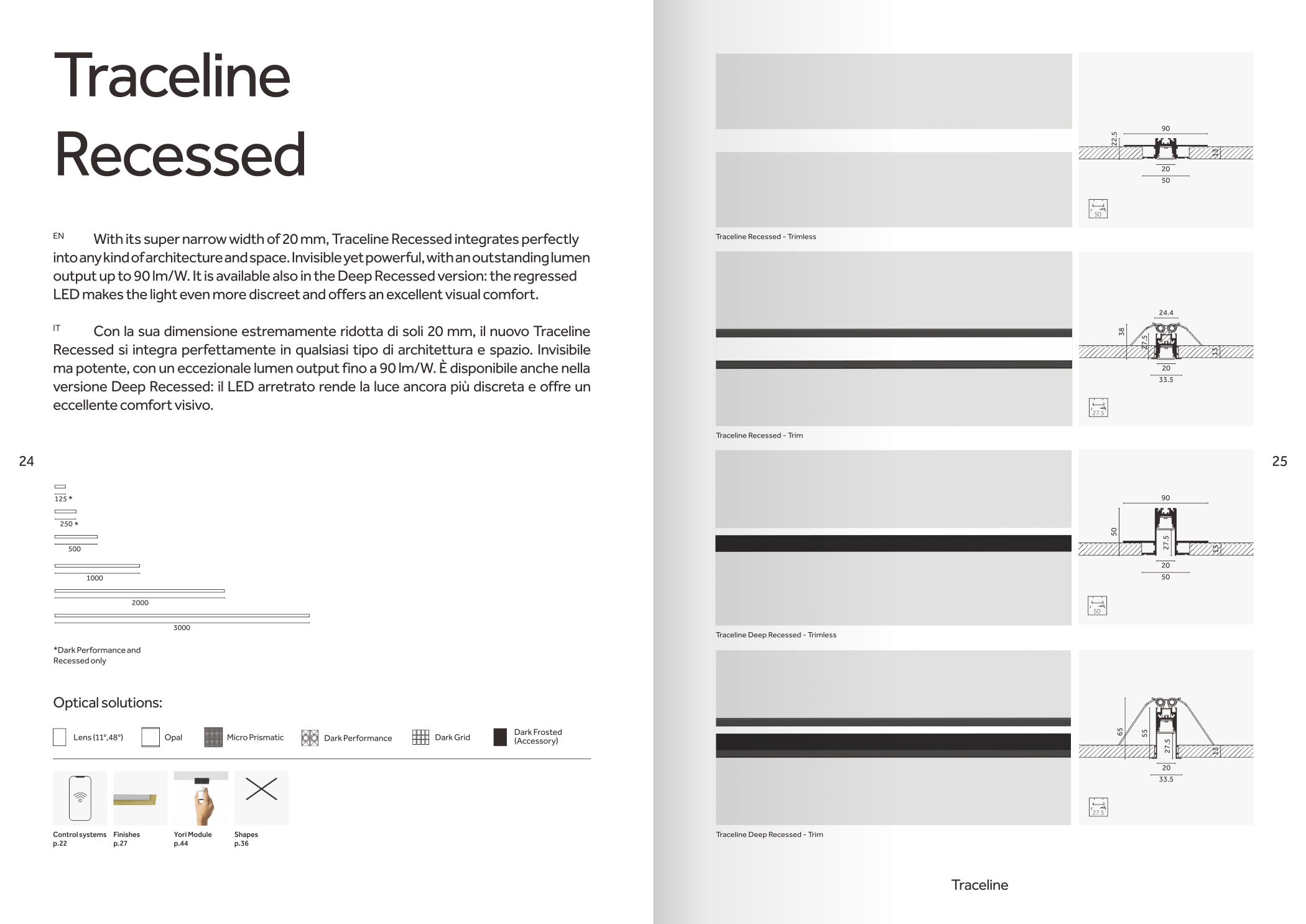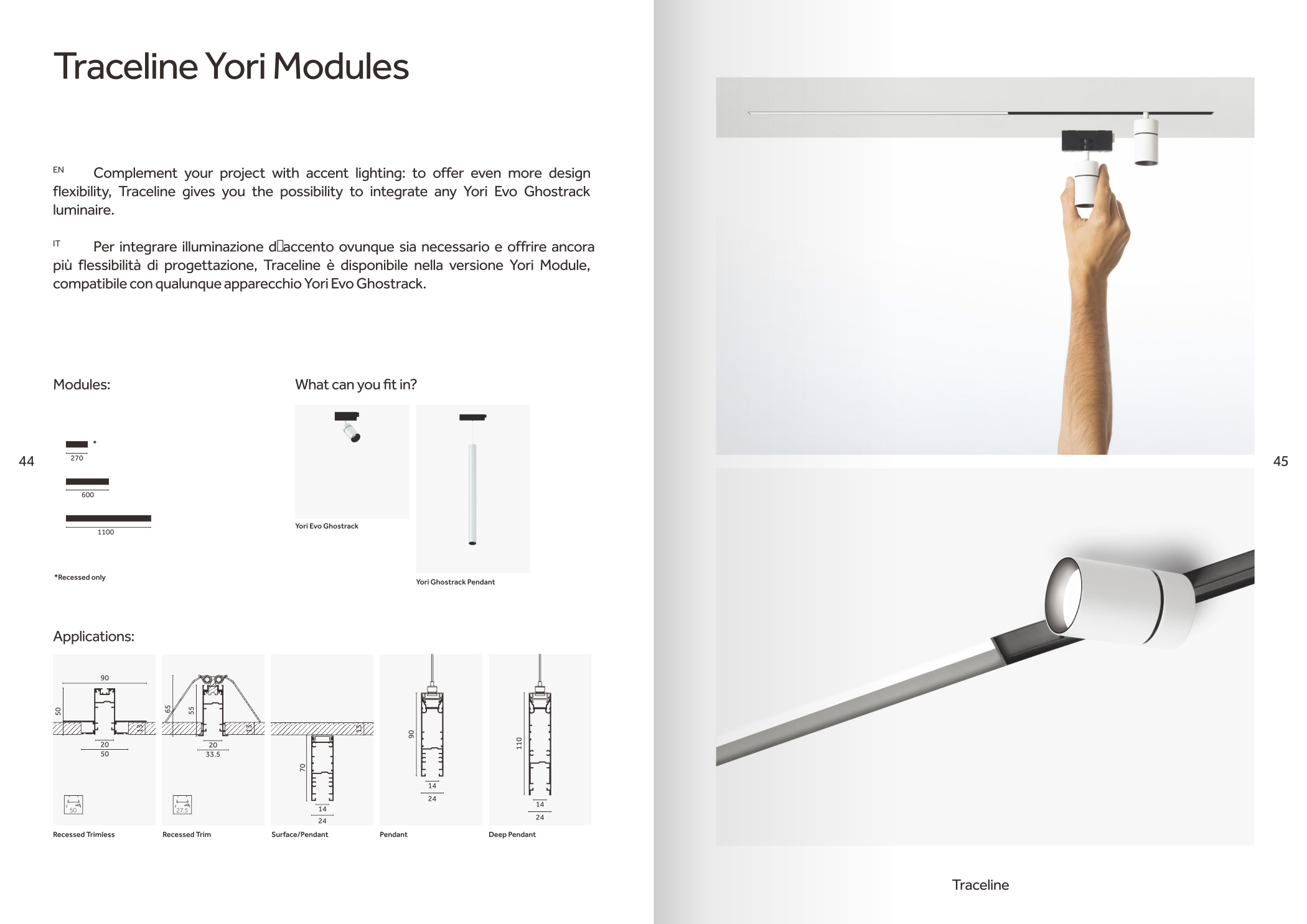 品牌設計手冊貫以Bring the lines to the forefront為核心概念,用極簡而冷峻的黑白灰主調配合局部高飽和橙色作焦點,把線性光本身變成視覺語言,封面大幅留白僅留一條1mm細線貫穿,暗示Traceline系統(tǒng)無限延伸的特質;內頁延續(xù)這一母題,用10mm通欄黑線作為章節(jié)索引,既呼應產品“連續(xù)線”賣點,也充當導航條,讀者翻動時黑線始終保持同一位置,形成物理層面的“光軌”體驗。版面采用8欄網格,文字與圖片交替嵌入,產品攝影全部去底并壓入5%灰背景,使燈具如同懸浮在空間中;對角線裁切的大圖與90°方形技術圖并置,象征“Anglesandsquares”光學配件的靈活組合。色彩體系只用PantoneBlack6C、CoolGray9C與品牌Orange021C,橙色專色僅限頁碼、關鍵數(shù)據(jù)與交互按鈕,確保任何一翻開頁即可捕捉核心參數(shù)。字體選用NeueHaasGrotesk與思源黑體混排,英文字體極細字重對應線性光,中文字體中等字重保證可讀性,二者通過8pt字號的微縮排布,把技術表格壓縮成“隱形”信息層,需借放大鏡或手機微距才能閱讀,隱喻Traceline無線控制“藏在光里”的科技屬性。裝訂采用裸背鎖線加180°平攤工藝,使1:1比例的3000mm長燈槽可以完整展開,閱讀者能直接把畫冊放在地面,與真實燈槽比對長度;封面覆以超啞光膜并在黑線處做局部UV凸起,手指劃過即可感知光的軌跡。整本畫冊沒有一處多余裝飾,所有圖形、留白、裁切都與Traceline的“無限延伸、無縫拼接、隱形控制”三大賣點一一對應,最終讓“線性照明”這一抽象概念變成可觸摸、可翻閱、可記憶的實體體驗。