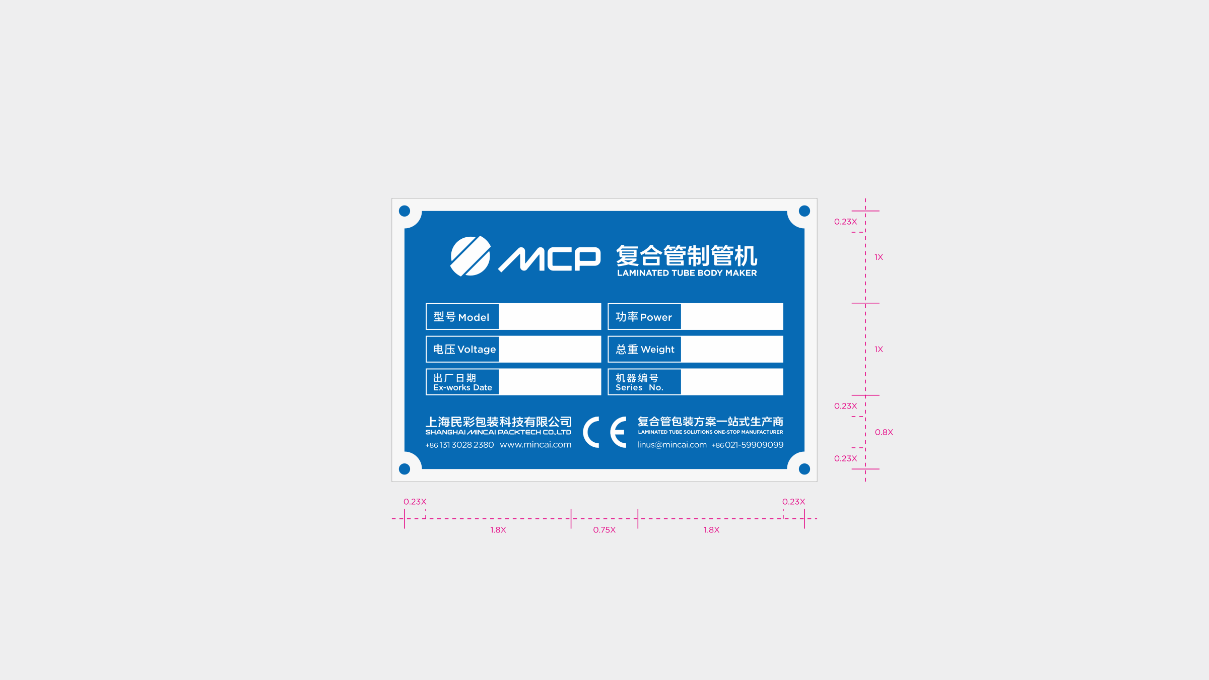 青成咨詢以全新的超級傳播符號,在2025年初為民彩包裝,構建具有“國際全球化的高視覺識別力”MCP專業(yè)領域品牌形象。我們從品牌策略、VI系統(tǒng)的基礎與應用、企業(yè)網(wǎng)站的設計落地為客戶公司塑造了完整的企業(yè)新形象,MCP是上海民彩包裝科技有限公司的英文簡稱,專注于國際市場的復合軟管制造全流程的供鏈商,主要產品是包裝機械設備和材料。