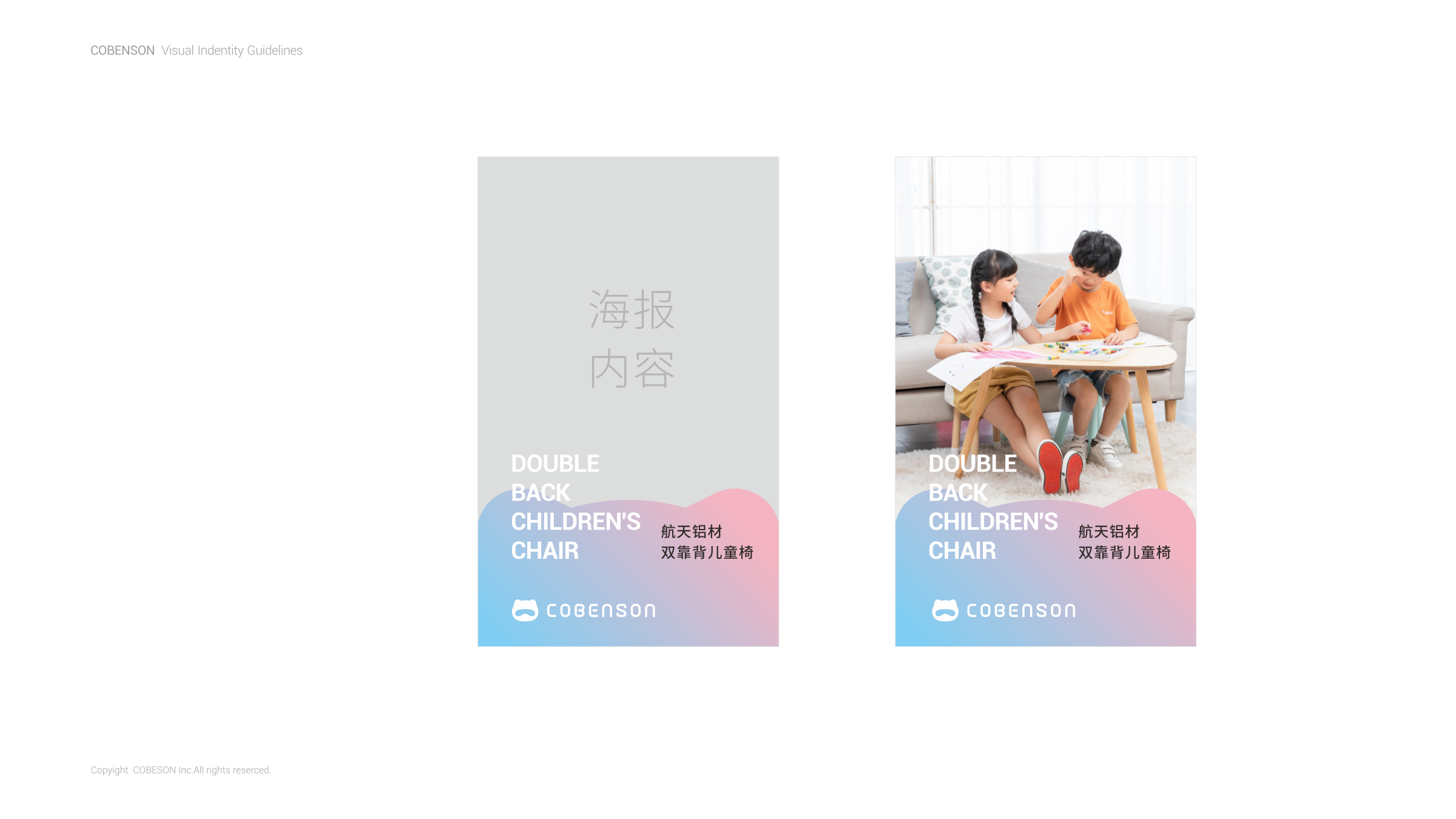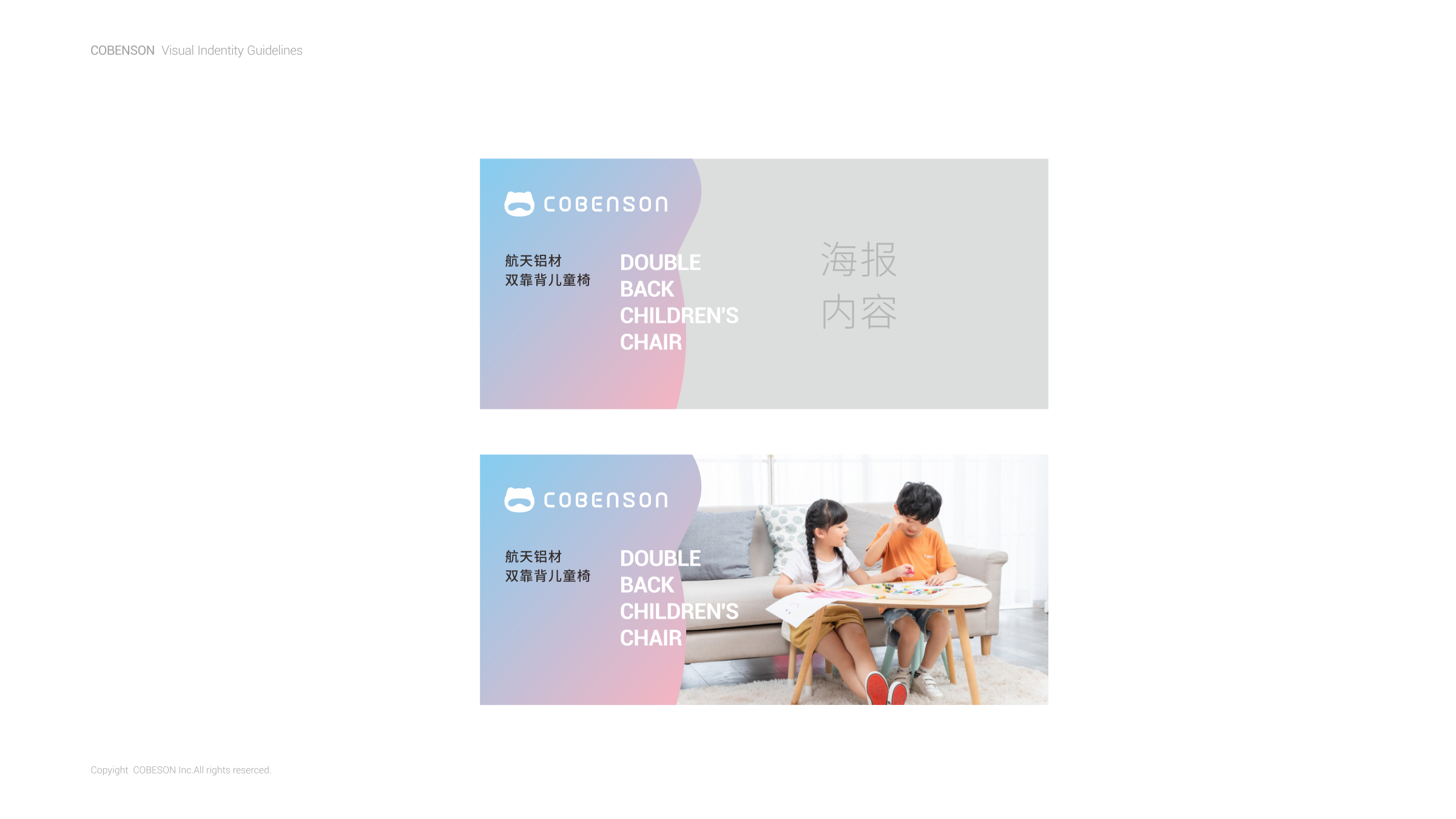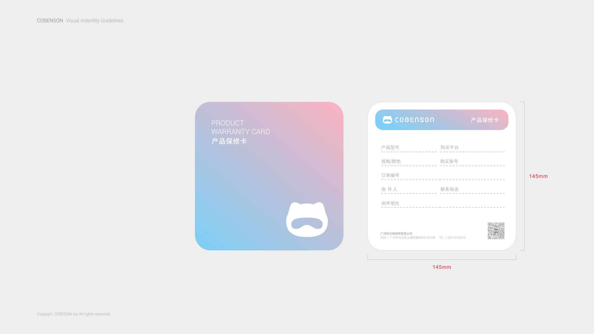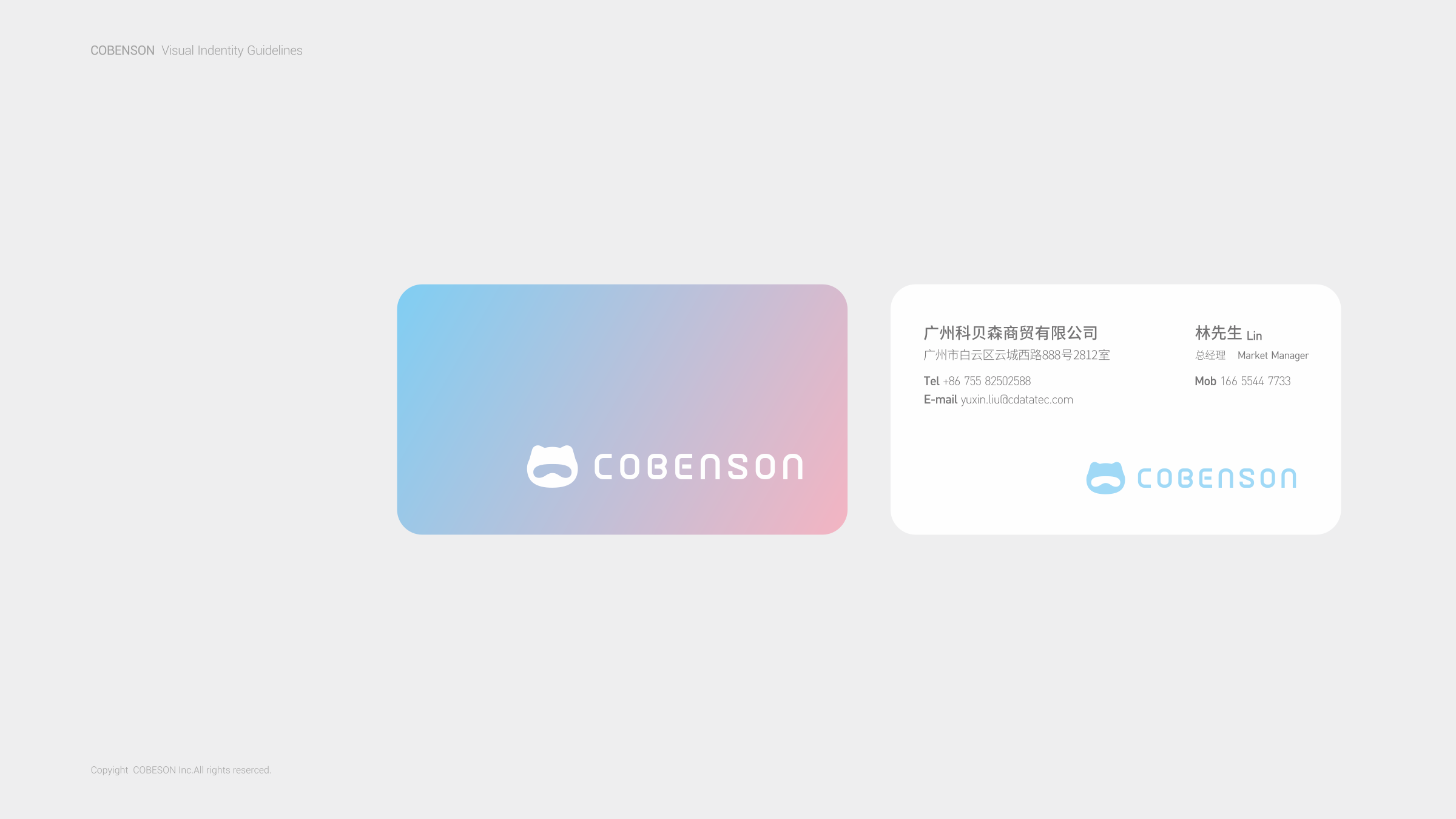 COBENSON科貝森標(biāo)志設(shè)計(jì),是由其品牌屬性所圍繞的兒童用戶群體為設(shè)計(jì)基礎(chǔ)。以科技與魔法貓相融的獨(dú)特形象,充分體現(xiàn)了年輕父母所關(guān)注產(chǎn)品的科學(xué)考量。同時(shí)兼顧了兒童對(duì)于萌寵的渴望與陪伴的想象。完整的COBENSON科貝森標(biāo)識(shí)分為:“圖形標(biāo)識(shí)”、“英文標(biāo)識(shí)”和“中文標(biāo)識(shí)”。整體造型簡(jiǎn)約科技、風(fēng)格輕潮。具有強(qiáng)烈的人格化個(gè)性與鮮活生命感。有利于品牌與用戶建立良好的互動(dòng),同時(shí)體現(xiàn)了品牌現(xiàn)代化的創(chuàng)新活力,溫暖而親切。使其更便于識(shí)別別和記憶,從而使品牌傳播最大化。