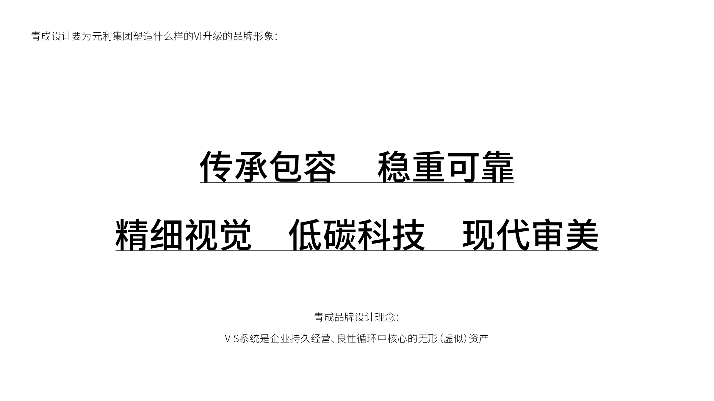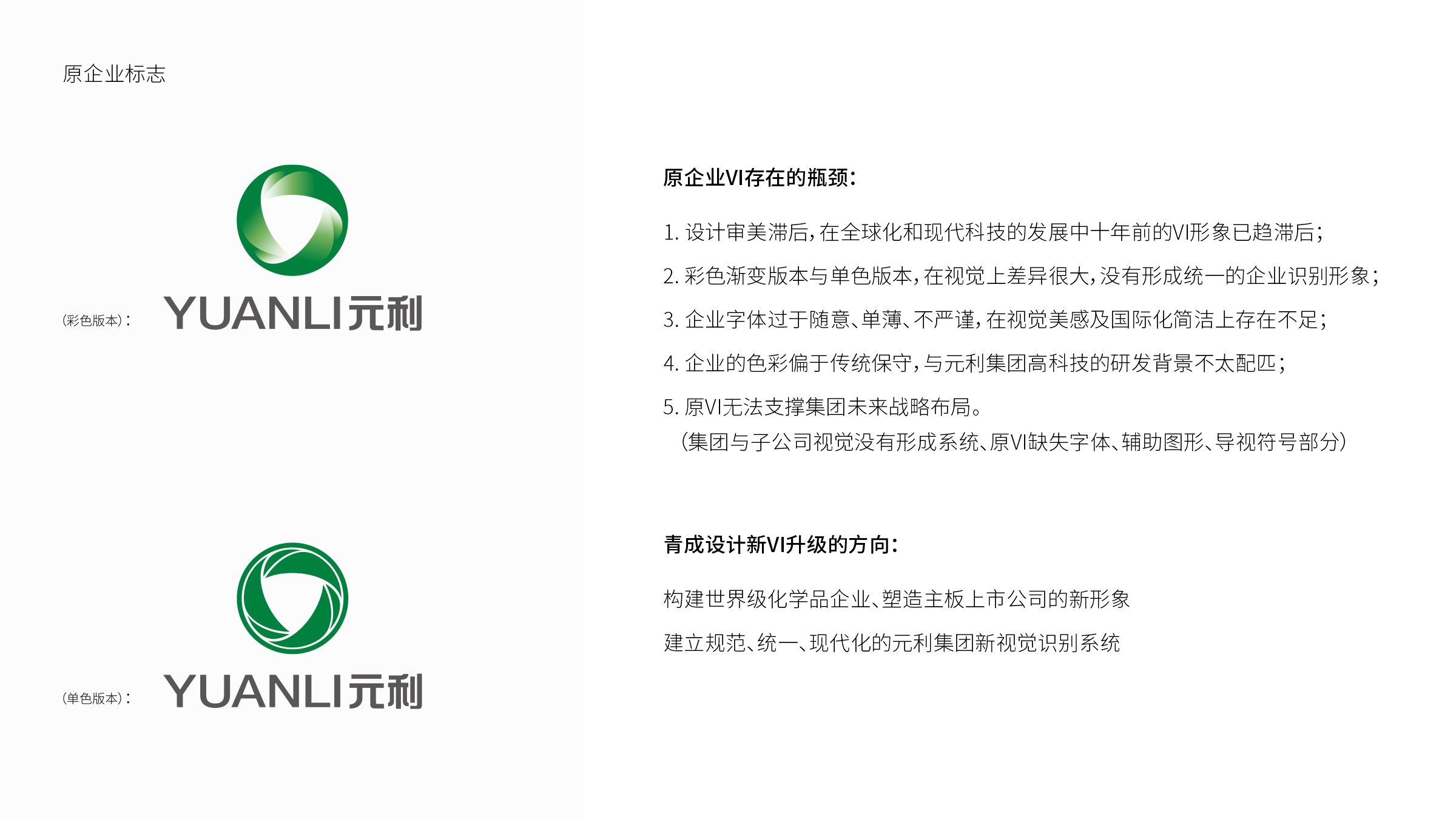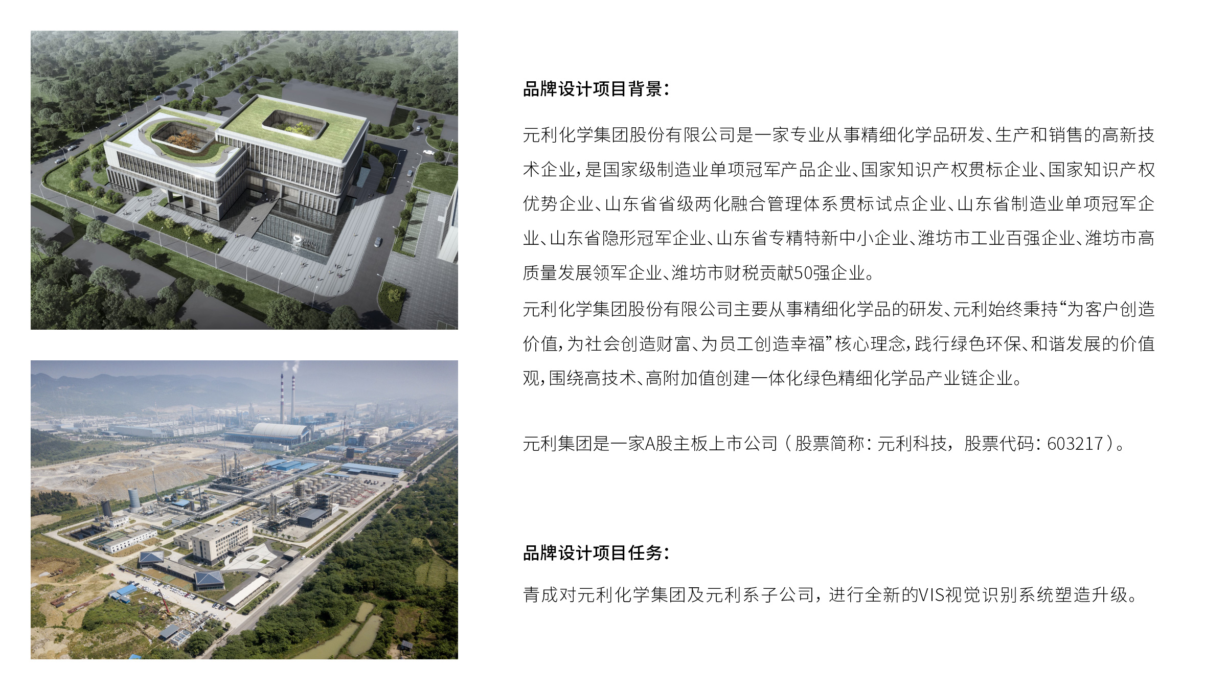 在2022年中期開始,青成品牌咨詢對元利化學集團及元利系子公司, 進行全新的VIS視覺識別系統(tǒng)塑造升級。我們制定了以“傳承包容、穩(wěn)重可靠、精細視覺、低碳科技、現(xiàn)代審美”為本次品牌升級的核心設(shè)計理念,來構(gòu)建元利集團未來走向世界級化學品企業(yè)、塑造主板上市公司的新形象;經(jīng)過前后六個月精心的設(shè)計,在2023年初基本完成了規(guī)范、統(tǒng)一、現(xiàn)代化的元利集團新視覺識別系統(tǒng)。